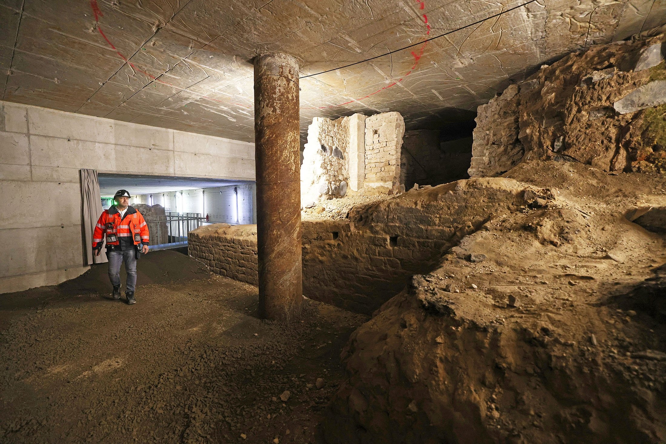 În timpul reexaminării unei abside aparținând unei mari bazilici din secolul al IV-lea d.Hr., situată în Rathausplatz și care părea doar o ușoară denivelare a pavajului, arheologii au realizat că structura ascundea mult mai mult. Analiza secțiunii transversale a arătat că fundația avea o grosime de peste patru metri.